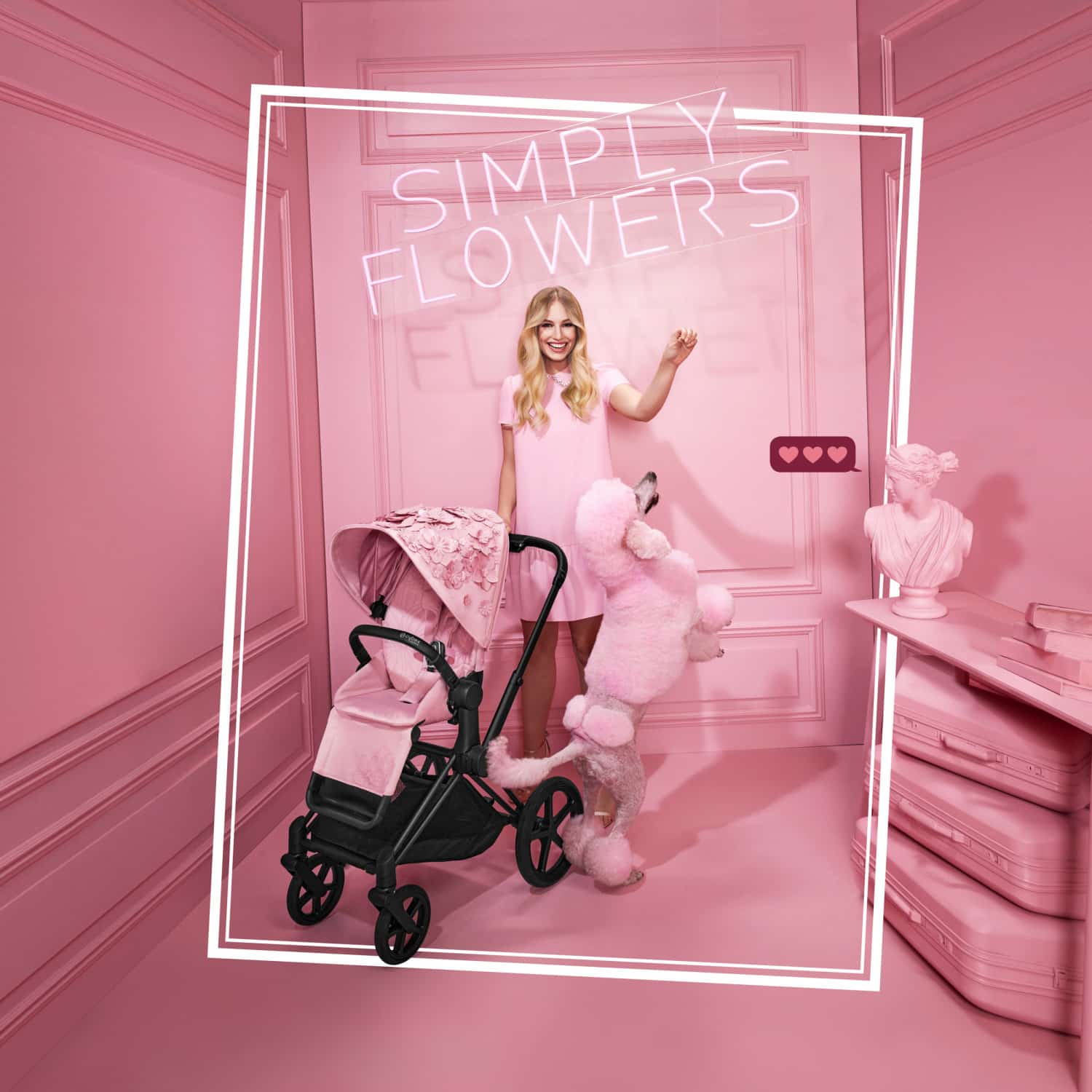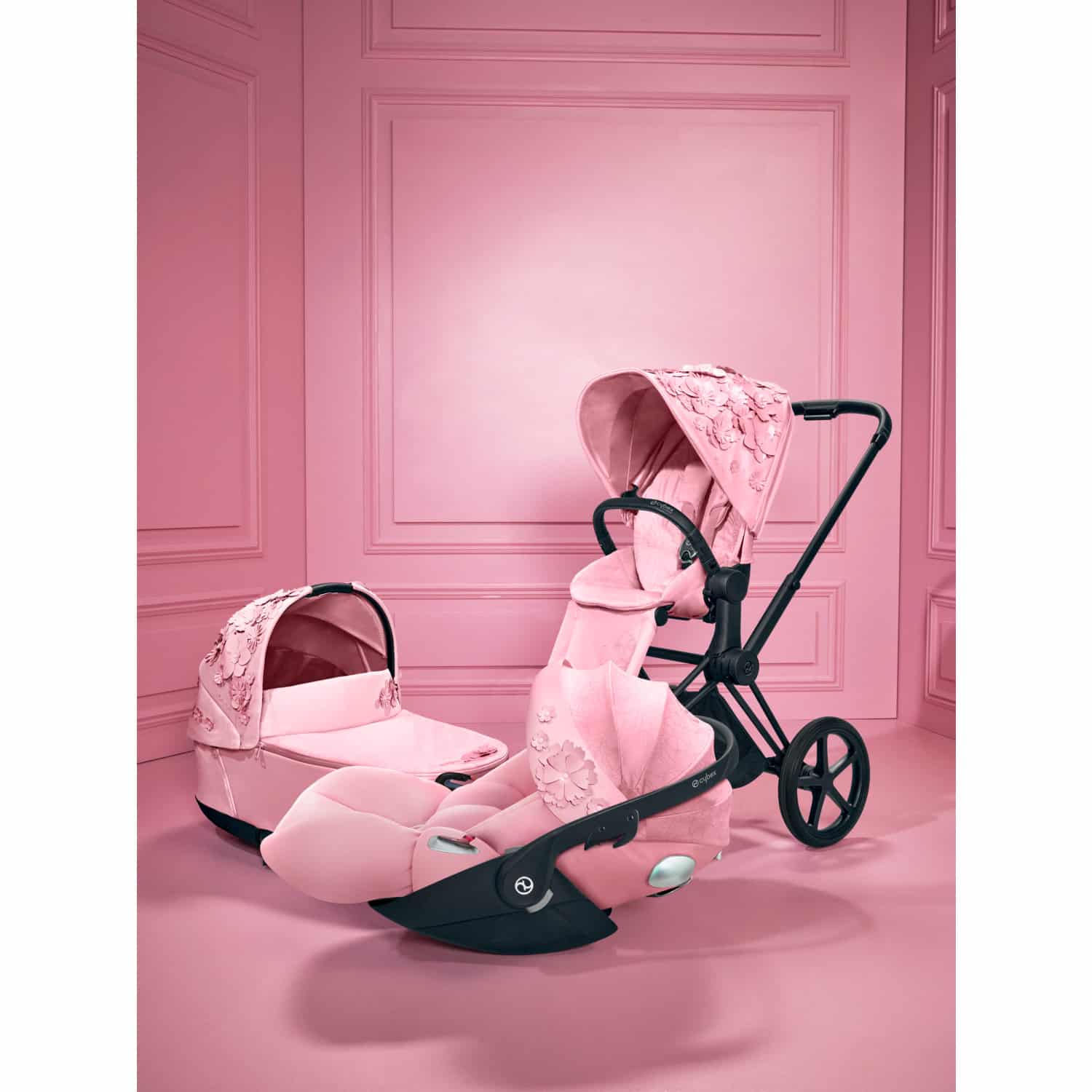 La colección Simply Flowers es el epítome de la artesanía y la creatividad. Cada elemento está decorado con delicados pétalos y flores en 3D, que parecen florecer en perfecta armonía. Las elegantes tonalidades de Pale Blush contrastan con el audaz acabado en Matte Black, creando un cochecito que irradia encanto romántico y modernidad. Diseñado para quienes valoran la atención al detalle, esta edición es una declaración de buen gusto.