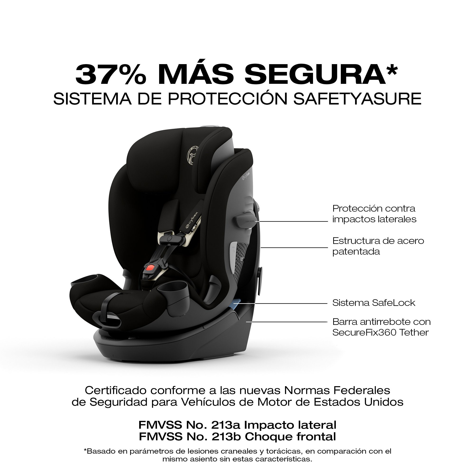 La Silla para Carro Bebé Cybex CALLISTO Select cumple con los estándares más recientes de seguridad infantil vehicular en Estados Unidos, garantizando protección integral desde el nacimiento hasta los 10 años.