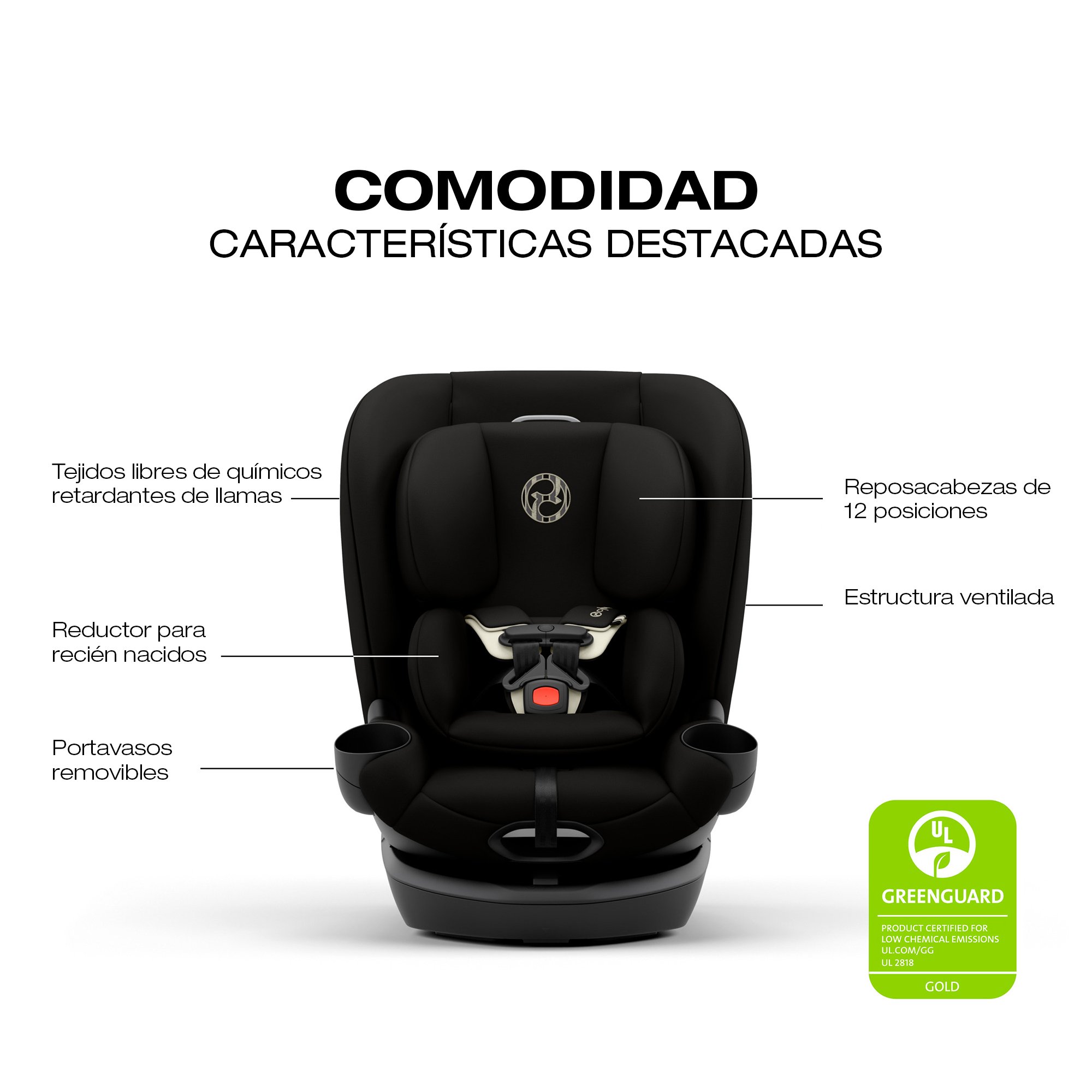 Cuenta con rotación 360°, instalación rápida con el sistema SafeLock™, y el innovador SafetyAssure Protection System, que ofrece 37% más seguridad en caso de impacto.